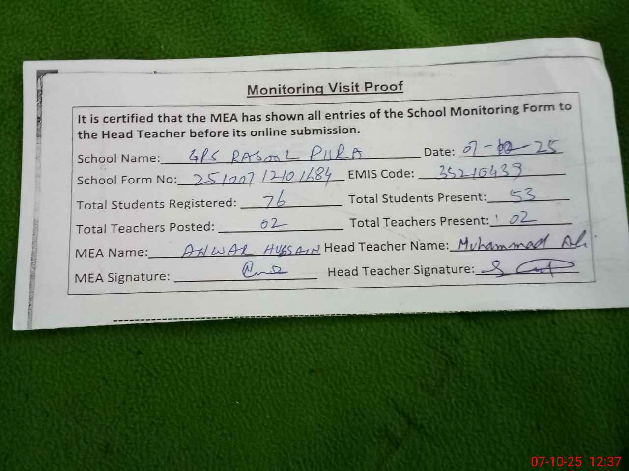 | EMIS Code: 35210439 | Name of School: GPS RASOOL PURA | |||