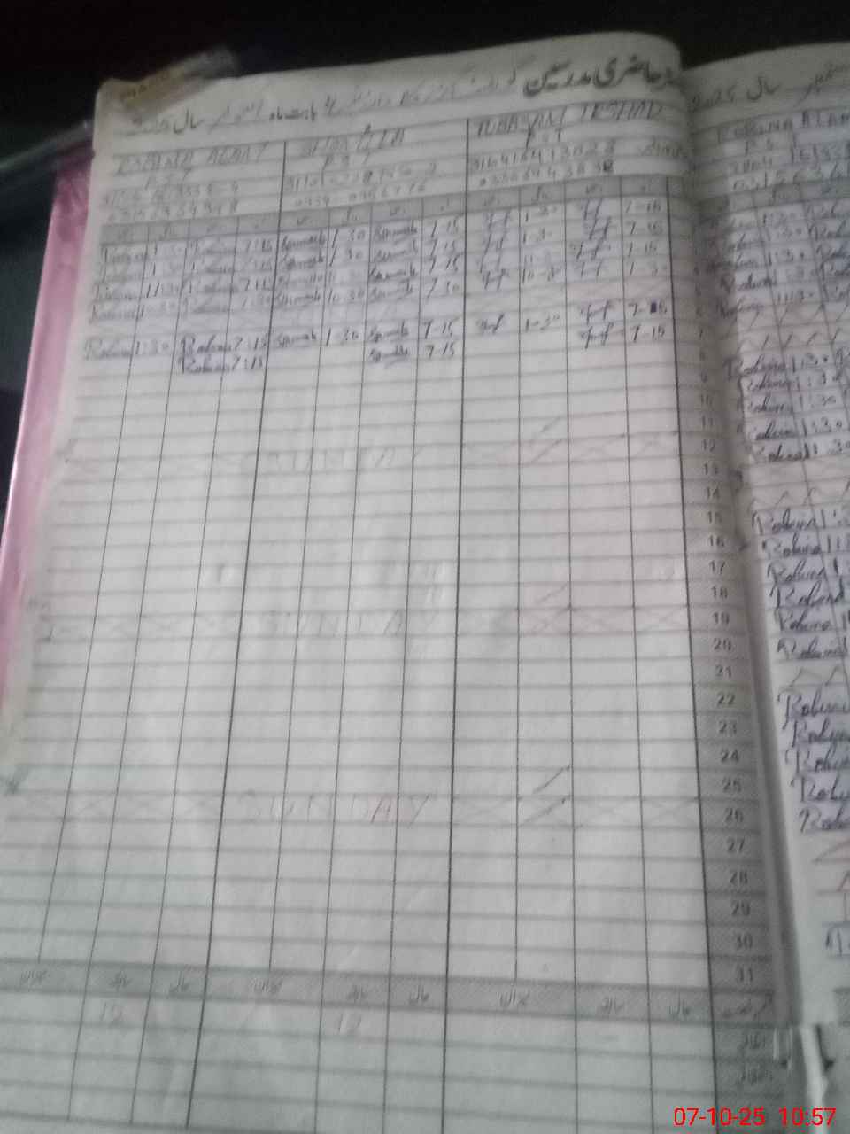 | CNIC | Full Name | Designation | R/C | Absence During Last Calender Month |
