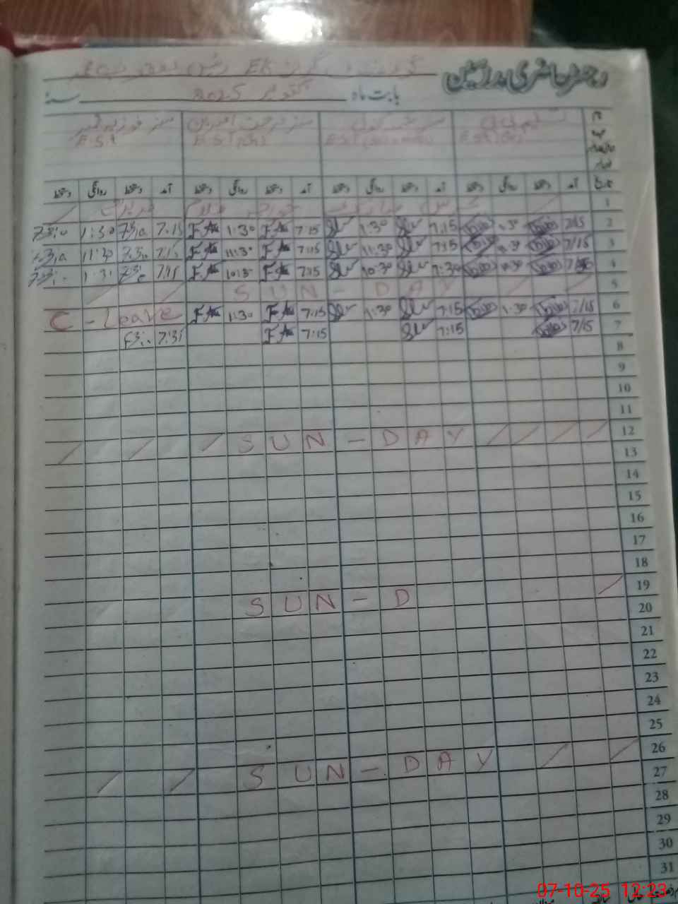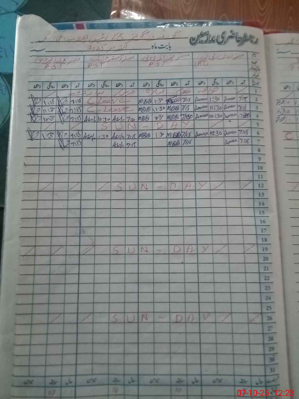 | CNIC | Full Name | Designation | R/C | Absence During Last Calender Month |