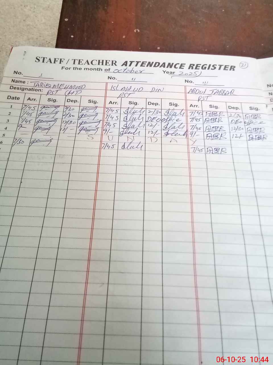 | Name: TA**** MA**** Designation: (School Headmaster's/Headmistress's) PST Phone/Cell Number: 03**** |