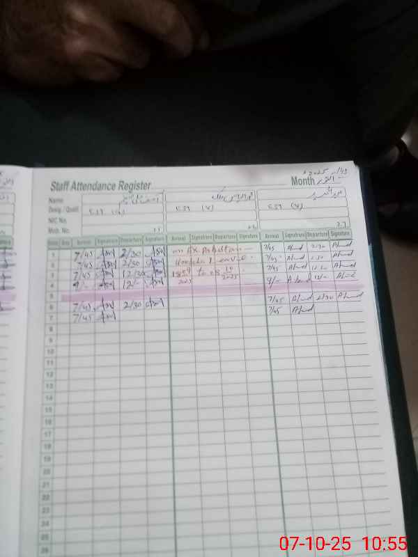 | CNIC | Full Name | Designation | R/C | Absence During Last Calender Month |