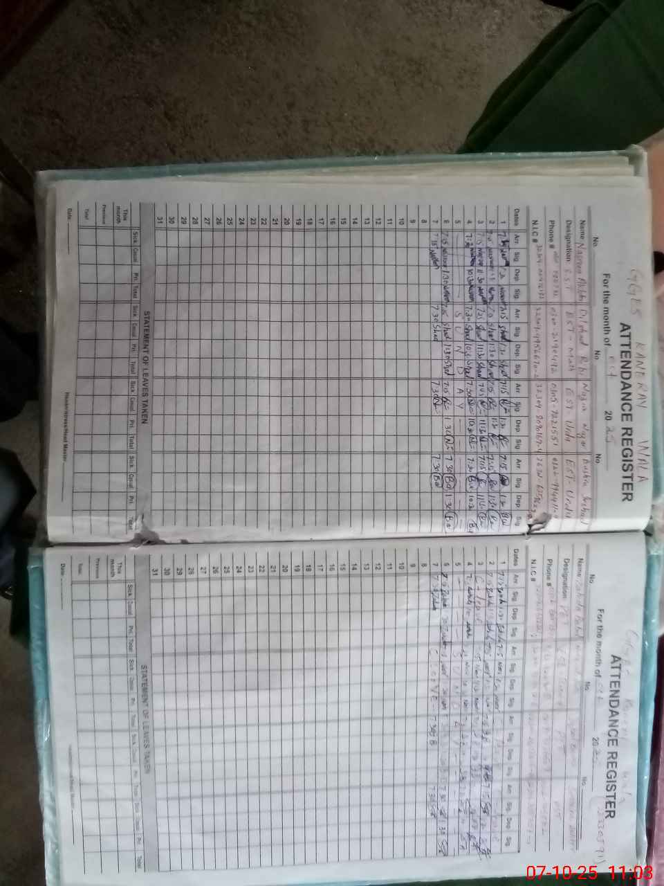 | CNIC | Full Name | Designation | R/C | Absence During Last Calender Month |