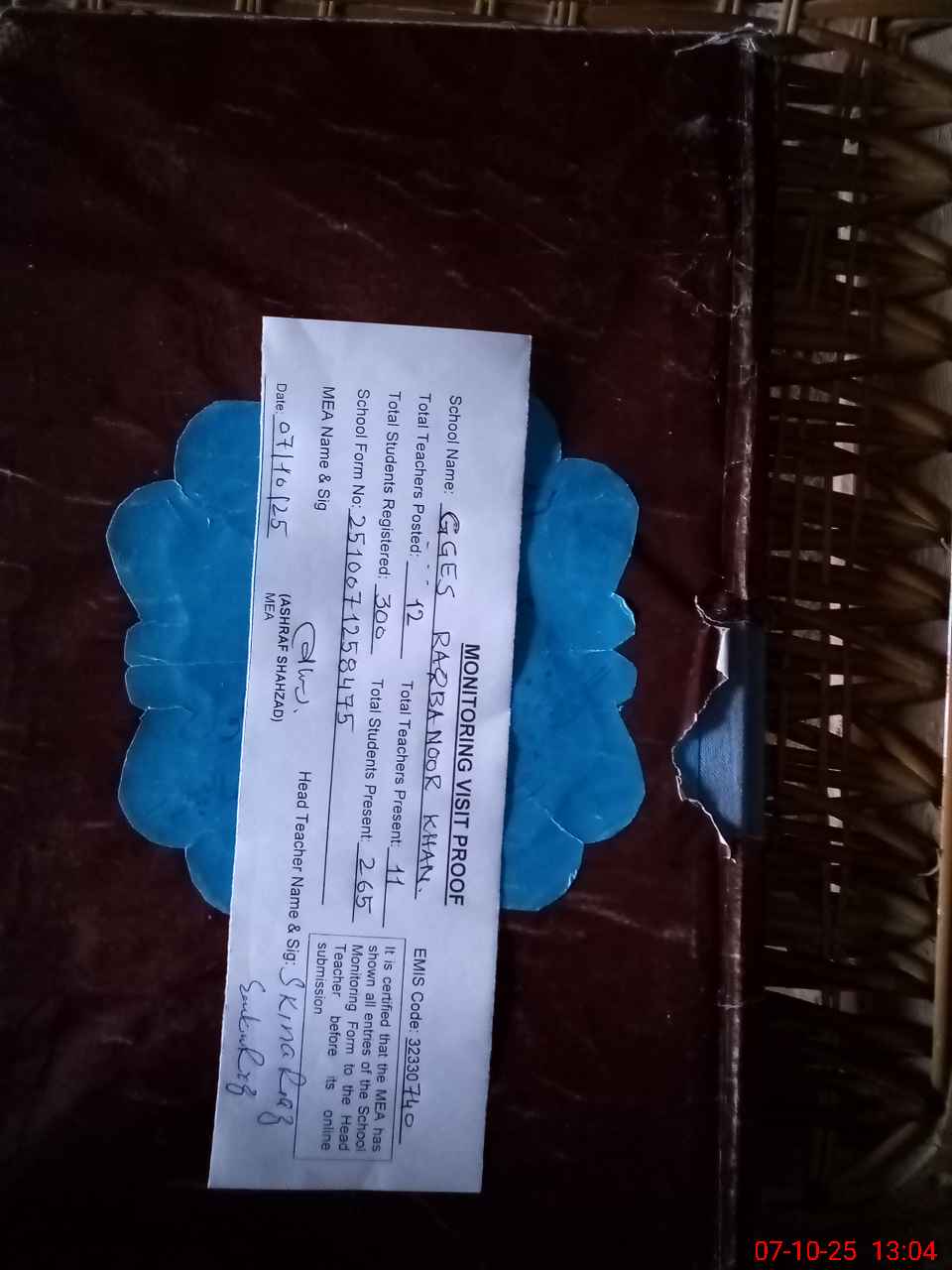 | EMIS Code: 32330740 | Name of School: GGES RAQBA NOOR KHAN | |||