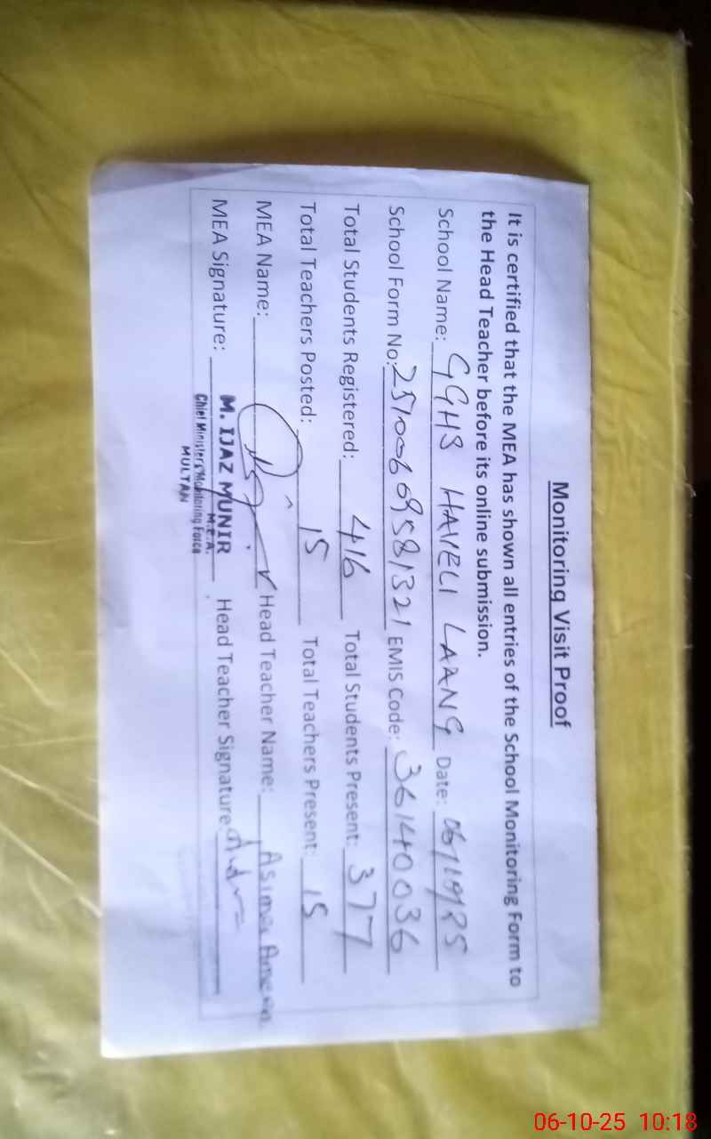 | EMIS Code: 36140036 | Name of School: GGHS HAVELI LONG | |||