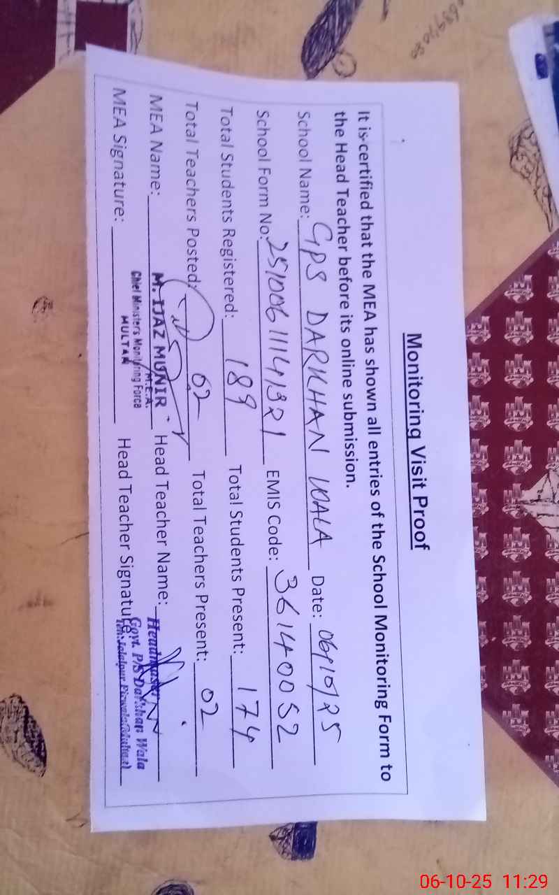 | EMIS Code: 36140052 | Name of School: GPS DARKHAN WALA | |||