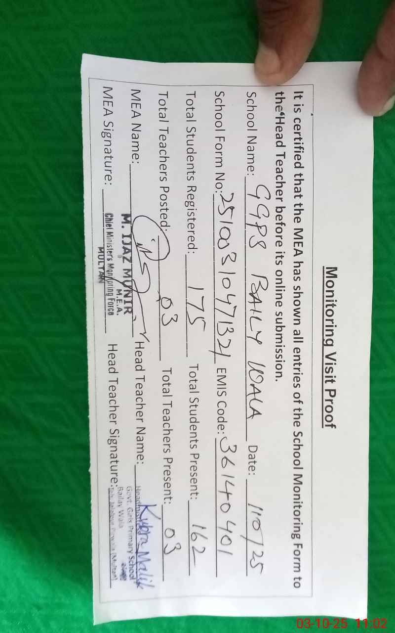 | EMIS Code: 36140401 | Name of School: GGPS BAILAY WALA | |||