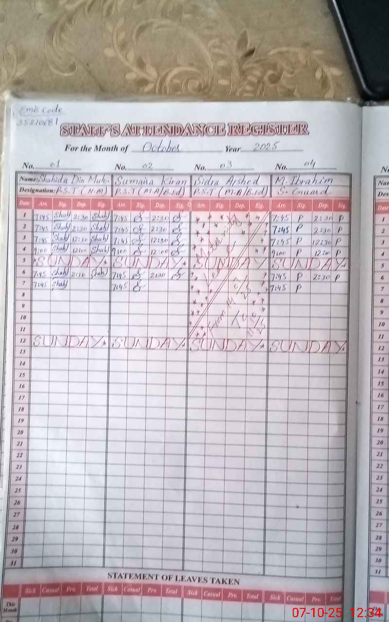 | Name: Sh**** Di**** Mu**** Designation: (School Headmaster's/Headmistress's) PST Phone/Cell Number: 03**** |