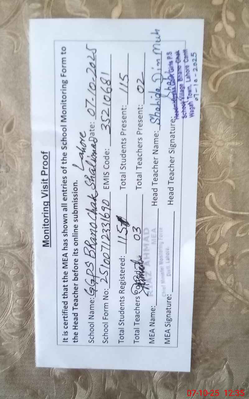 | EMIS Code: 35210681 | Name of School: GGPS BHANO CHAK | |||