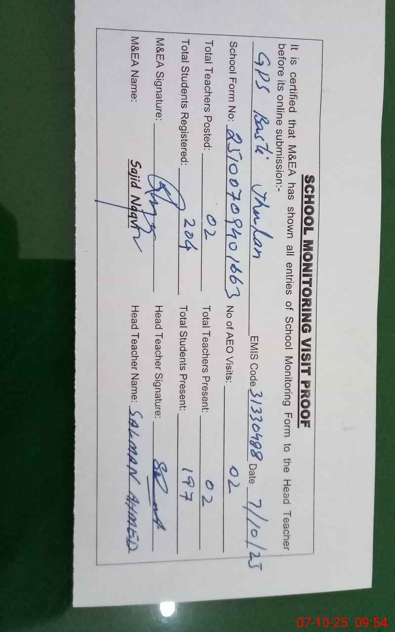 | EMIS Code: 31330488 | Name of School: GPS BASTI JHULAN | |||