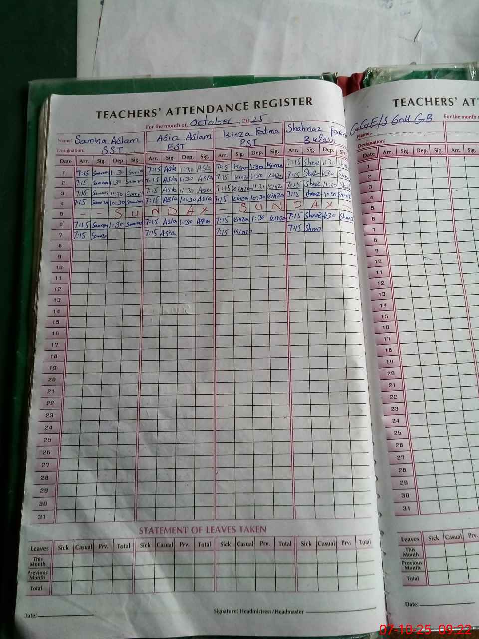 | Name: SA**** AS**** Designation: (School Headmaster's/Headmistress's) SST (GENERAL ) Phone/Cell Number: 03**** |