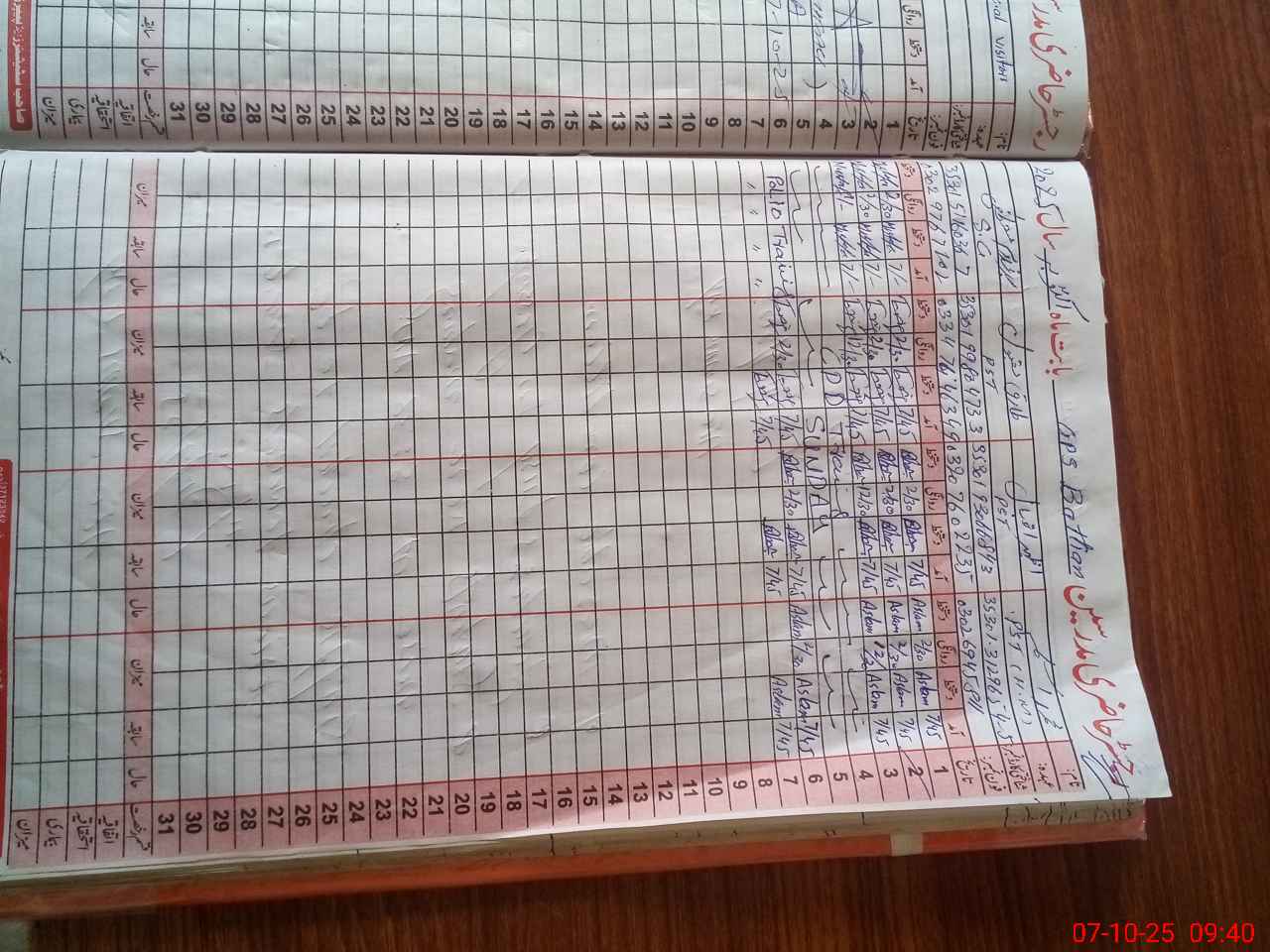 | CNIC | Full Name | Designation | R/C | Absence During Last Calender Month |