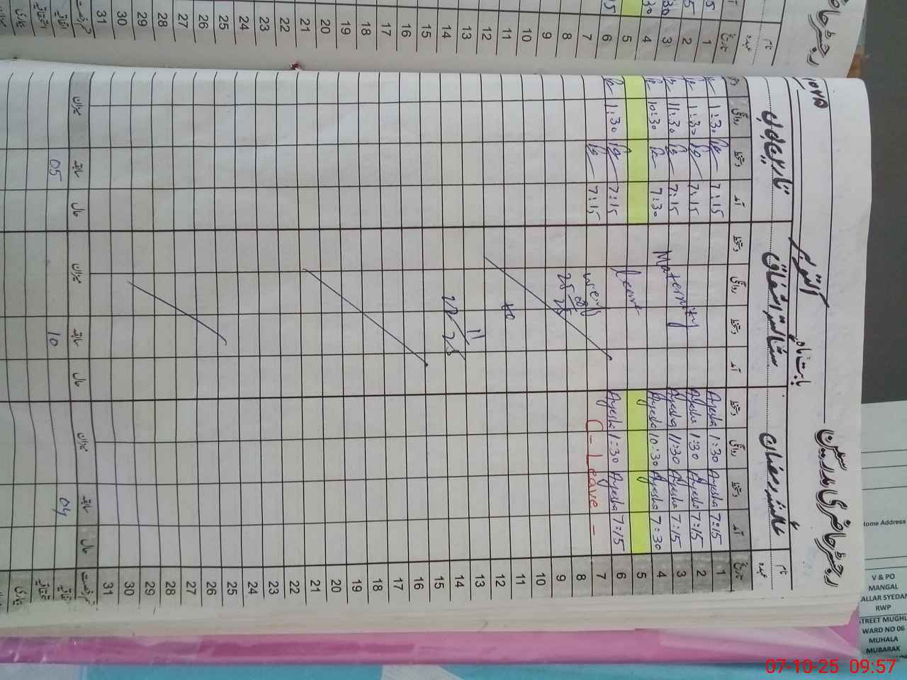 | CNIC | Full Name | Designation | R/C | Absence During Last Calender Month |