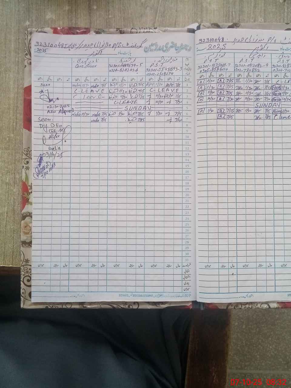 | Name: FI**** AH**** Designation: (School Headmaster's/Headmistress's) PST Phone/Cell Number: 03**** |