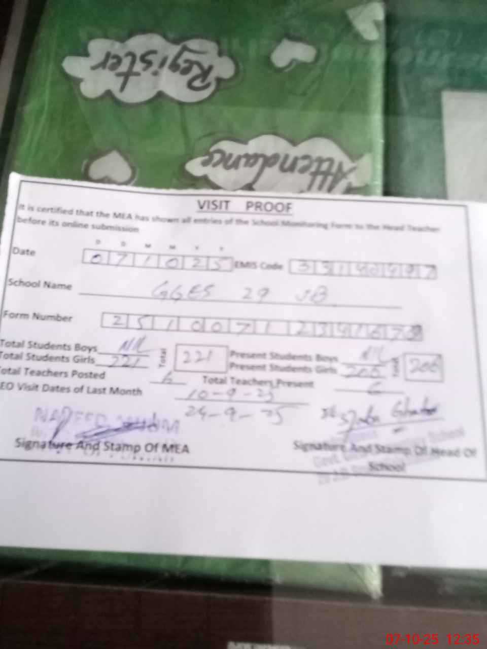 | EMIS Code: 33140497 | Name of School: GGES CHAK 29 JB | |||