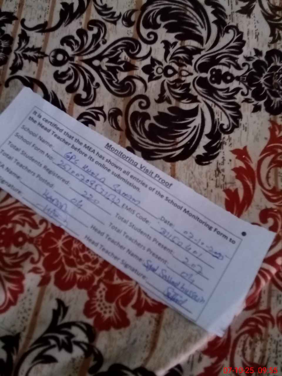 | Certified that this School was Inspected by the Undersigned MEA/DMO Today and the Information Stated Above is as Per Record. | |||||