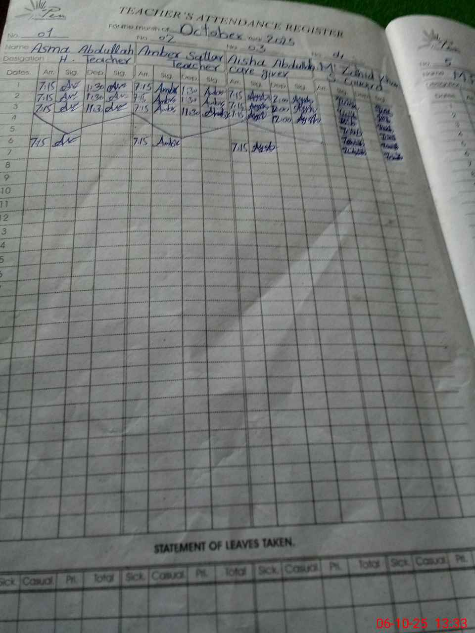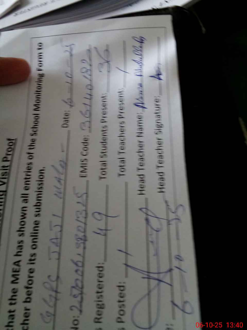 | Attendance Register | Head Teacher | MEA with School | Visit Proof |