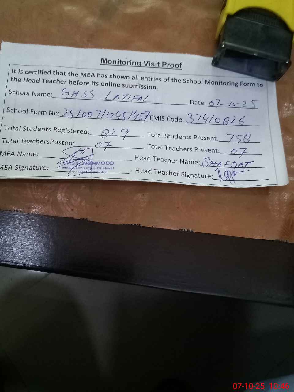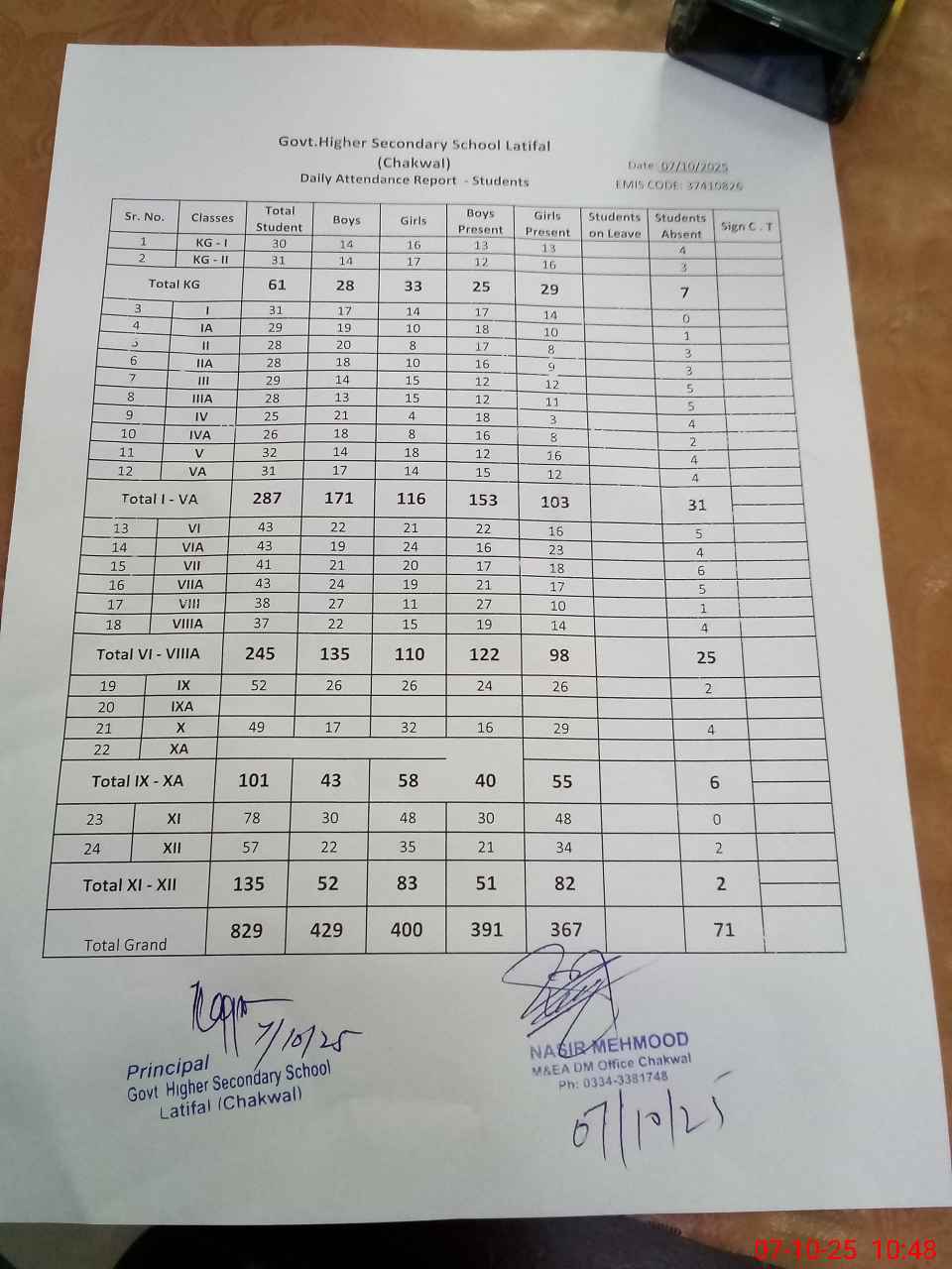 | EMIS Code: 37410826 | Name of School: GHSS LATIFAL CHAKWAL | |||
