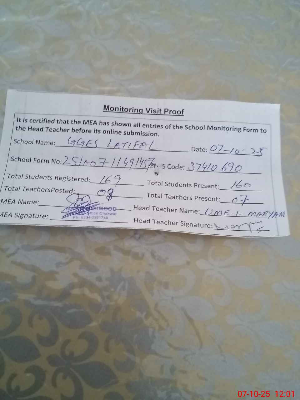 | EMIS Code: 37410690 | Name of School: GGES LATIFAL | |||