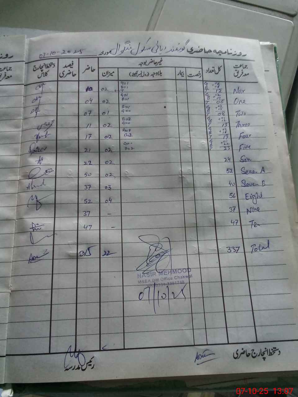 | Certified that this School was Inspected by the Undersigned MEA/DMO Today and the Information Stated Above is as Per Record. | |||||