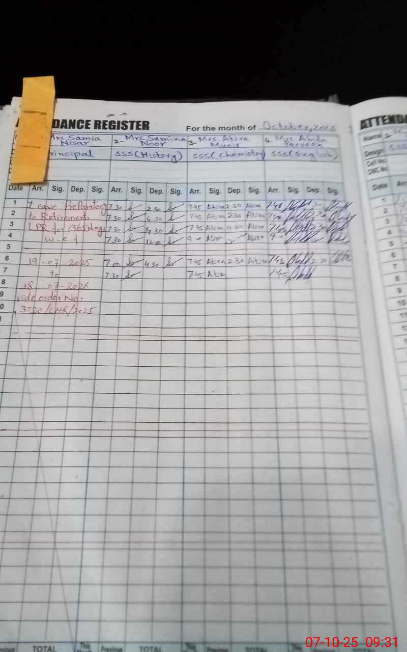 | 37**** | Iq**** Na**** | Regular | 0 | 0 | 31 | 0 | 0 | 0 | 0 | 0 | 0 | Absent (Un-Authorized) | |