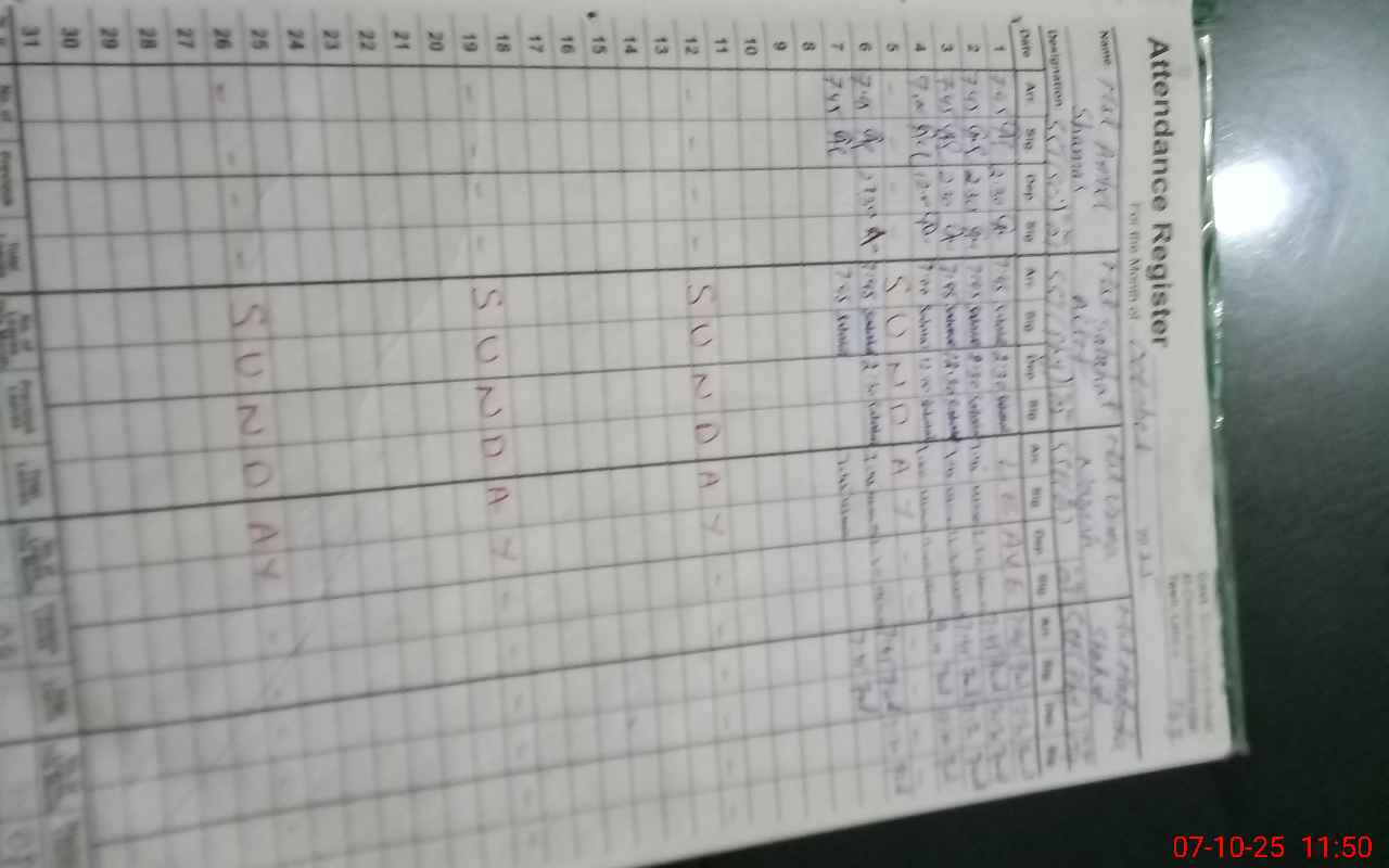 | CNIC | Full Name | Designation | R/C | Absence During Last Calender Month |