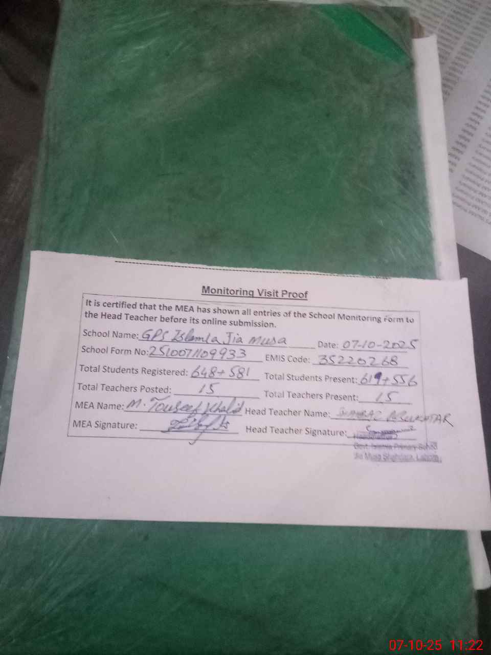 | EMIS Code: 35220268 | Name of School: GPS ISLAMIA JIA MUSA | |||