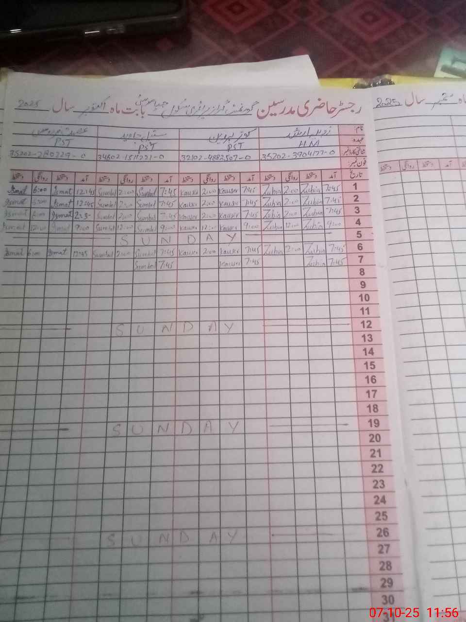 | Name: Zo**** Ar**** Designation: (School Headmaster's/Headmistress's) Head Mistress Phone/Cell Number: 03**** |