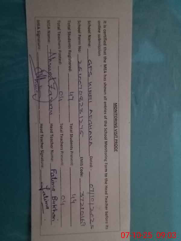 | EMIS Code: 37210169 | Name of School: GPS KIRRI AFGHANA | |||