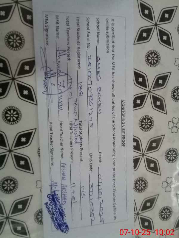 | EMIS Code: 37210302 | Name of School: GMES BOKEN | |||