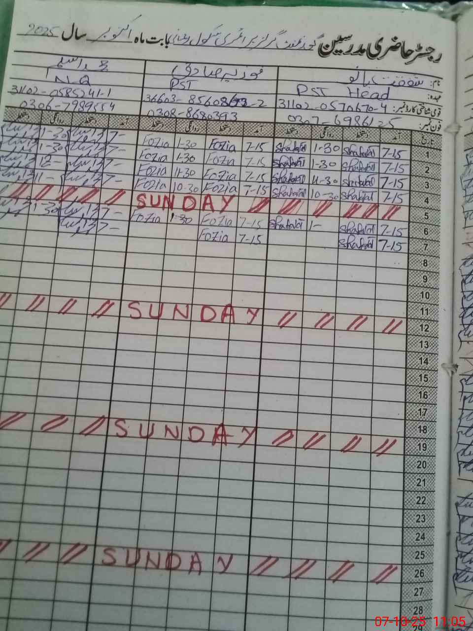 | Name: SH**** BA**** Designation: (School Headmaster's/Headmistress's) PST Phone/Cell Number: 03**** |