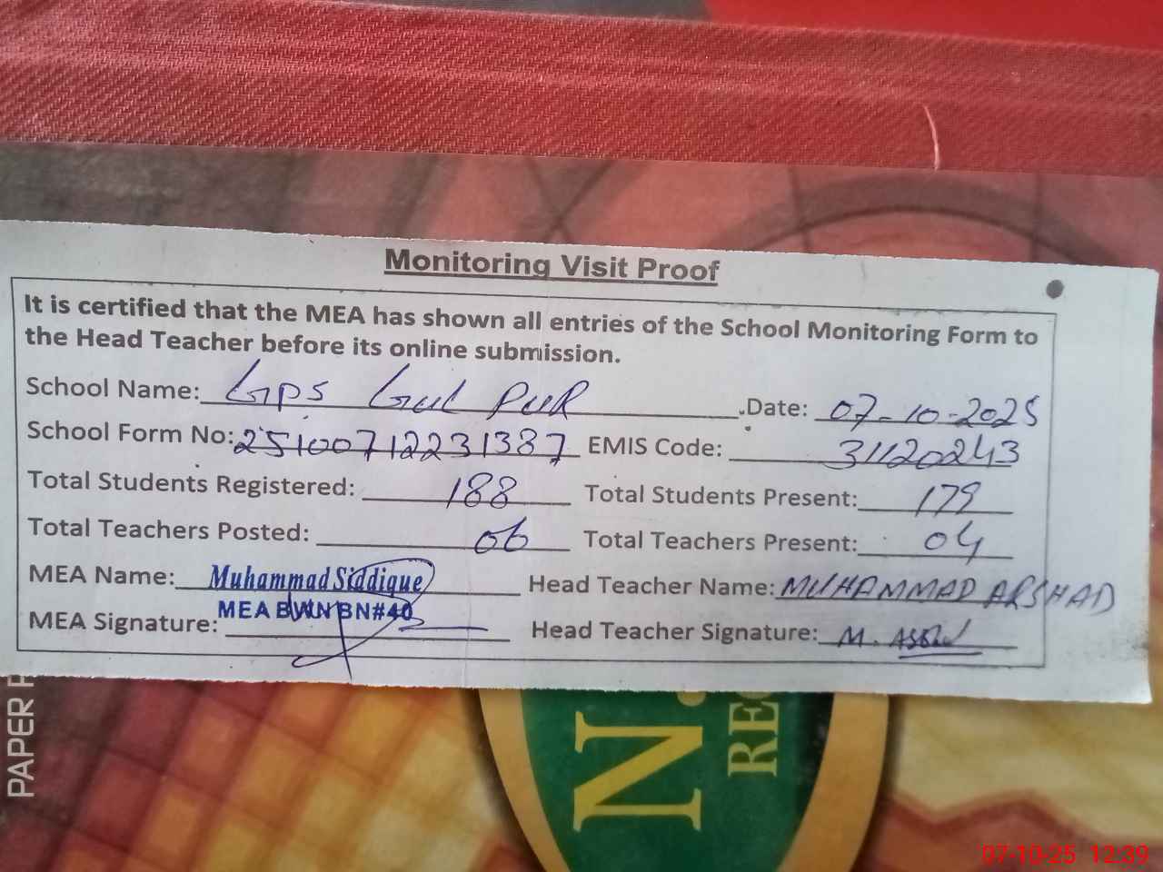 | EMIS Code: 31120243 | Name of School: GPS GUL PUR | |||