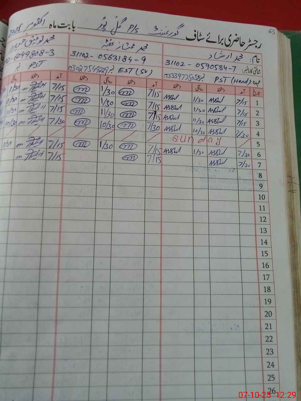 | Name: MU**** IR**** Designation: (School Headmaster's/Headmistress's) PST Phone/Cell Number: 03**** |