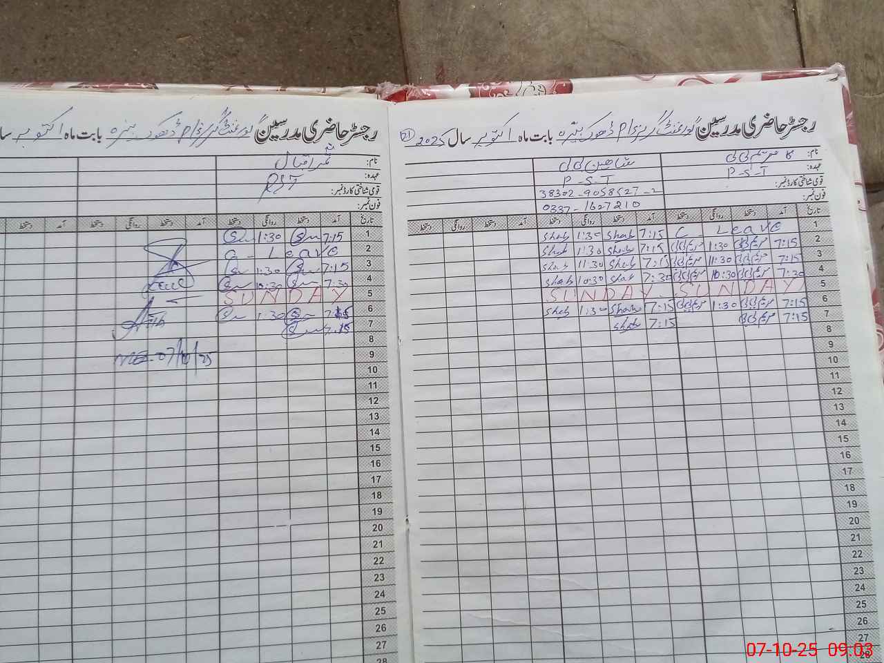 | CNIC | Full Name | Designation | R/C | Absence During Last Calender Month |