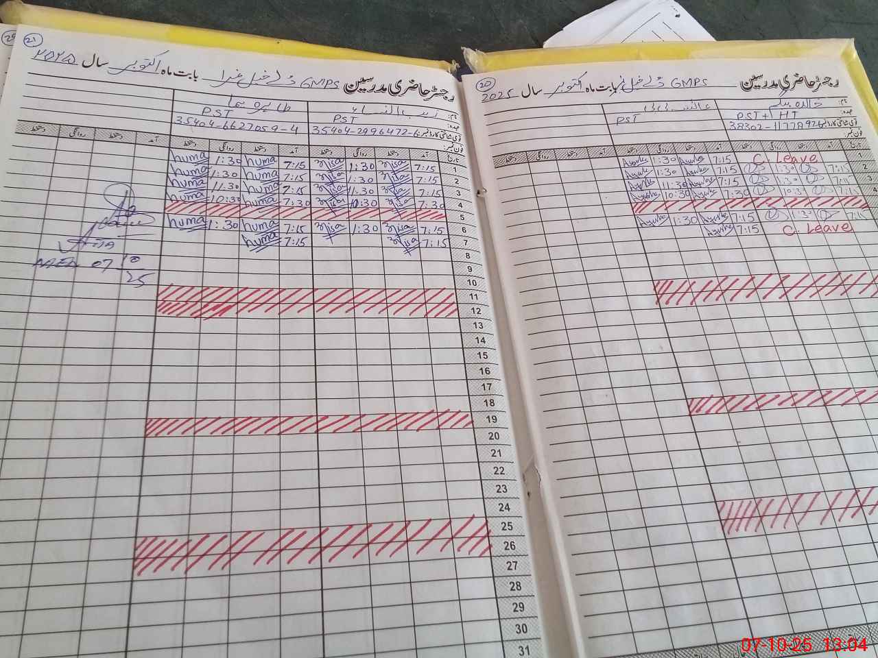 | Name: Kh**** Be**** Designation: (School Headmaster's/Headmistress's) PST Phone/Cell Number: 03**** |