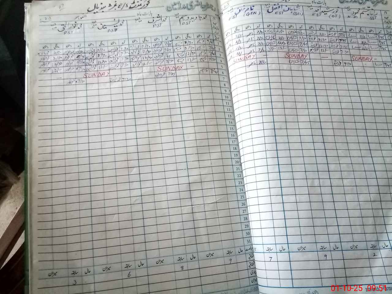 | CNIC | Full Name | Designation | R/C | Absence During Last Calender Month |