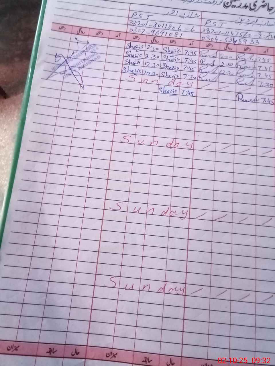 | CNIC | Full Name | Designation | R/C | Absence During Last Calender Month |