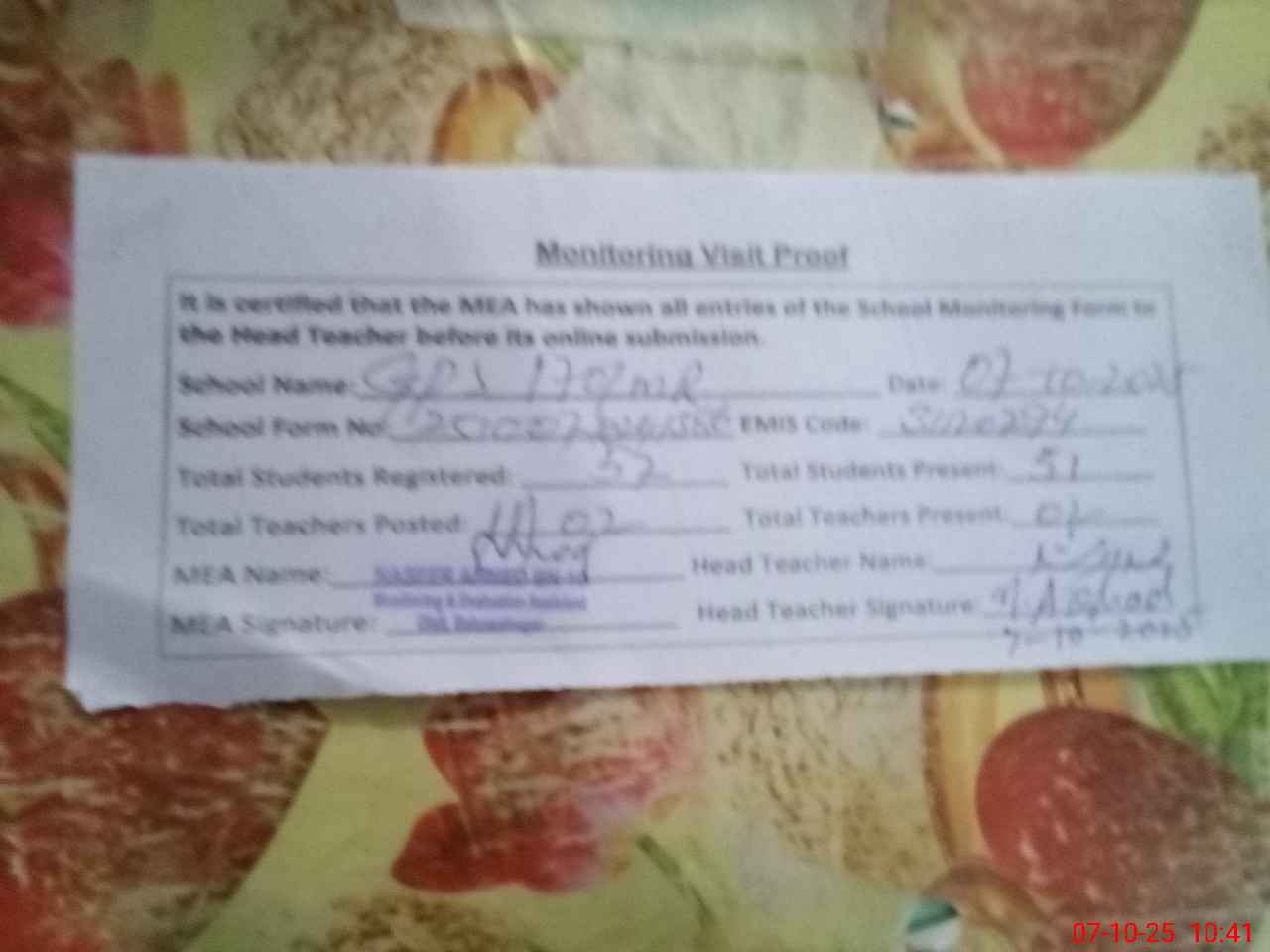 | Certified that this School was Inspected by the Undersigned MEA/DMO Today and the Information Stated Above is as Per Record. | |||||