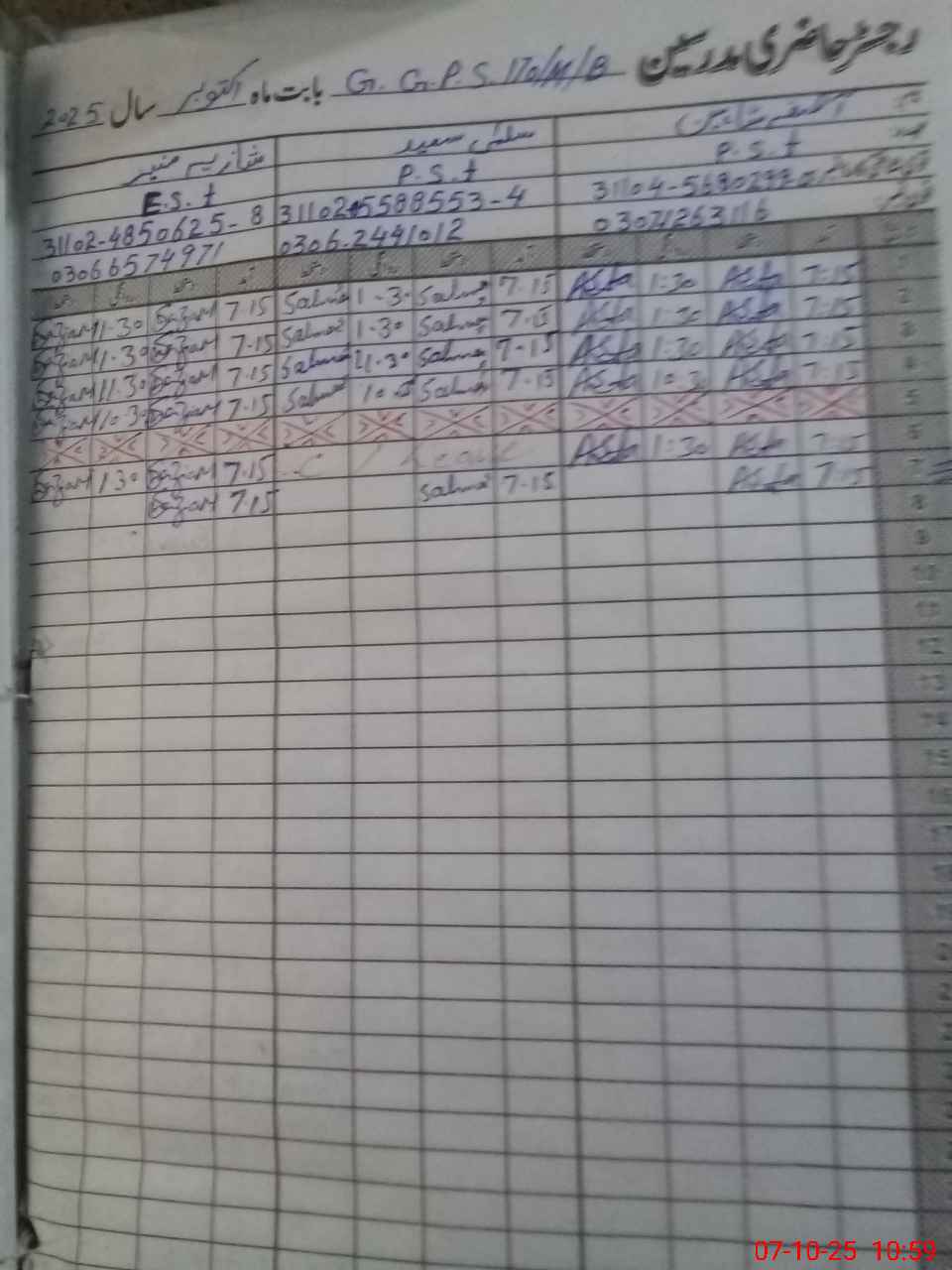 | Name: As**** Sh**** Designation: (School Headmaster's/Headmistress's) PST Phone/Cell Number: 03**** |