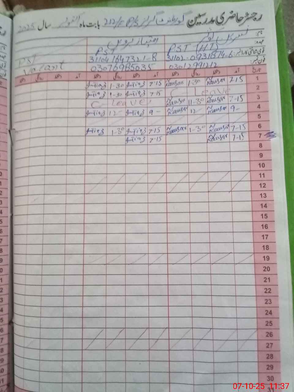 | Name: NA**** KO**** Designation: (School Headmaster's/Headmistress's) PST Phone/Cell Number: 03**** |