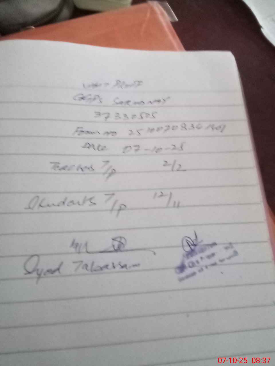 | Monitoring Date: 07-10-2025 | Start Time: 07-10-2025 08:12 AM | End Time: 07-10-2025 08:40 AM | Name of MEA: Ta**** Na**** | |