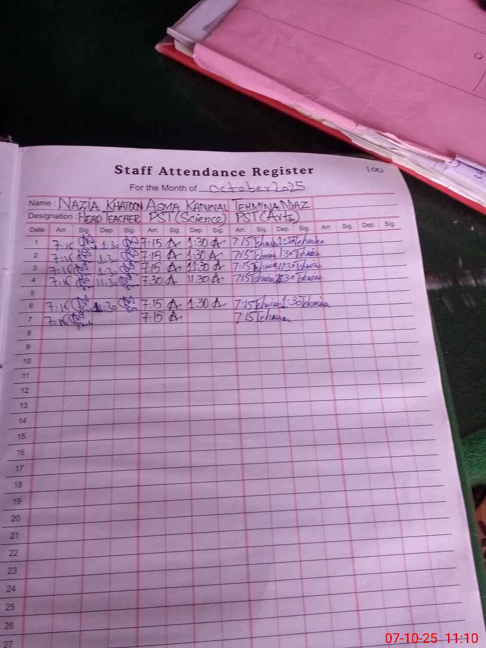 | Name: Na**** Kh**** Designation: (School Headmaster's/Headmistress's) PST Phone/Cell Number: 03**** |