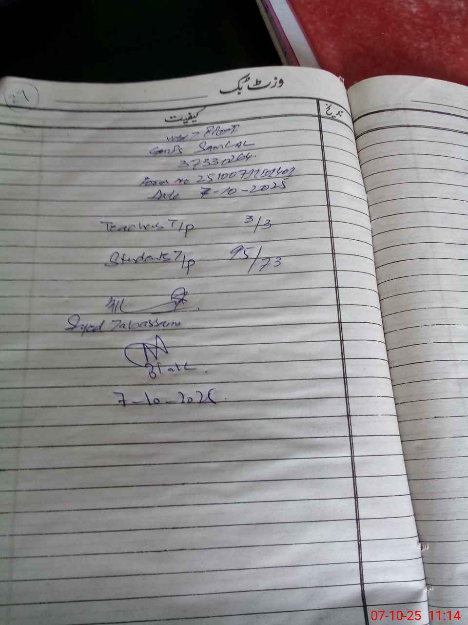 | Monitoring Date: 07-10-2025 | Start Time: 07-10-2025 10:46 AM | End Time: 07-10-2025 11:17 AM | Name of MEA: Ta**** Na**** | |