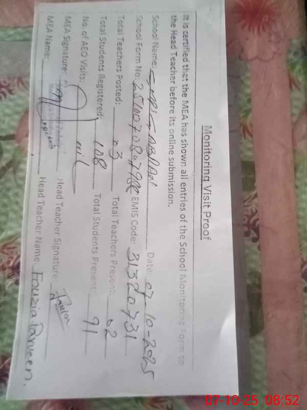 | Certified that this School was Inspected by the Undersigned MEA/DMO Today and the Information Stated Above is as Per Record. | |||||