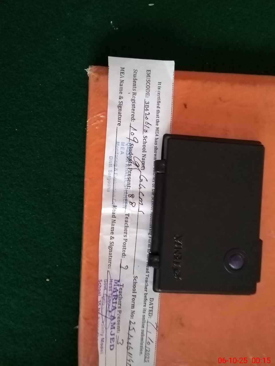| Certified that this School was Inspected by the Undersigned MEA/DMO Today and the Information Stated Above is as Per Record. | |||||