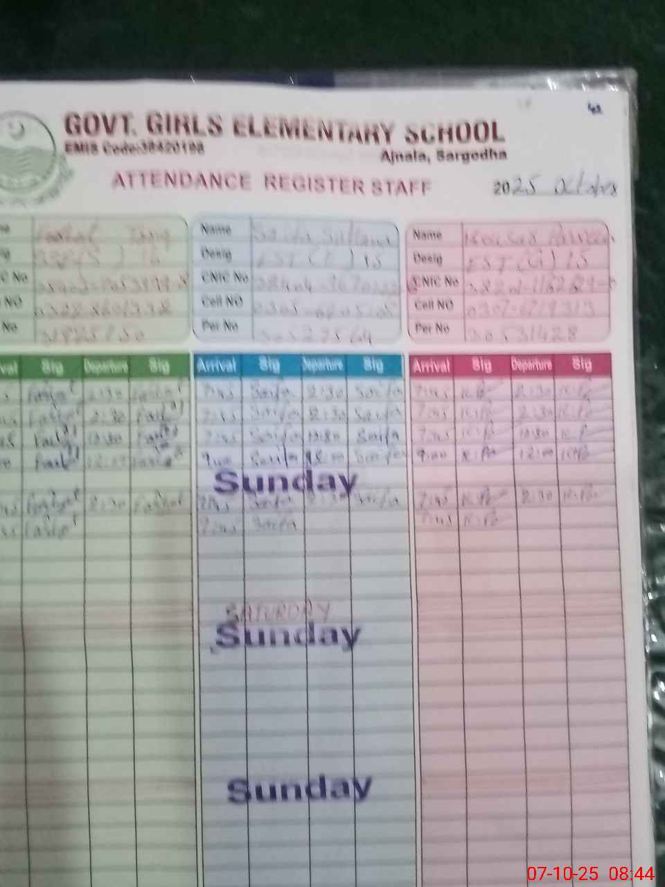 | Name: FA**** TA**** Designation: (School Headmaster's/Headmistress's) S.S.E.(C S) Phone/Cell Number: 03**** |