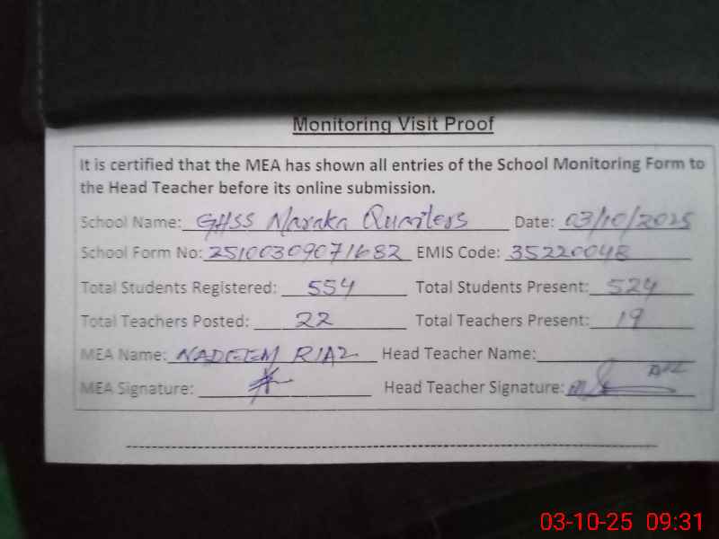 | EMIS Code: 35220048 | Name of School: GHSS MARAKA QUARTERS MULTAN ROAD | |||