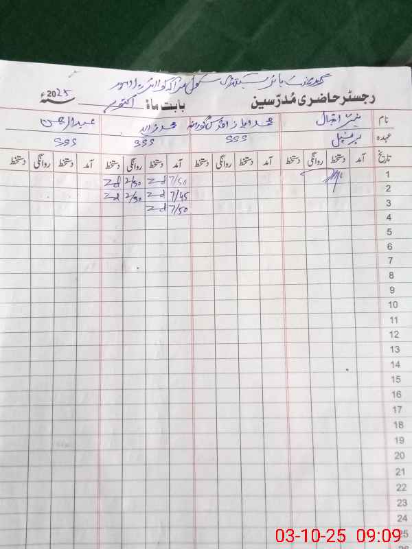 | 35**** | Na**** Iq**** | PRINCIPAL | Regular | 0 | 0 | 0 | 0 | 0 | 0 | 0 | 0 | 0 | Absent (Un-Authorized) |
