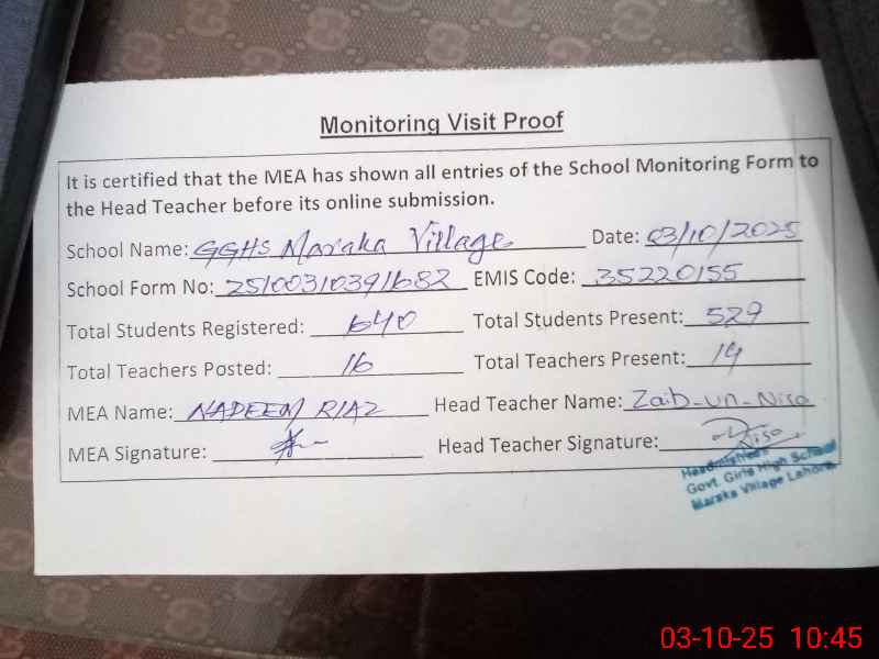 | EMIS Code: 35220155 | Name of School: GGHS MARAKA VILLAG(Newly upgraded) | |||