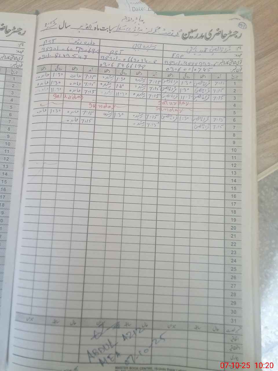 | Name: Qu**** UlAi**** Designation: (School Headmaster's/Headmistress's) PST Phone/Cell Number: 03**** |