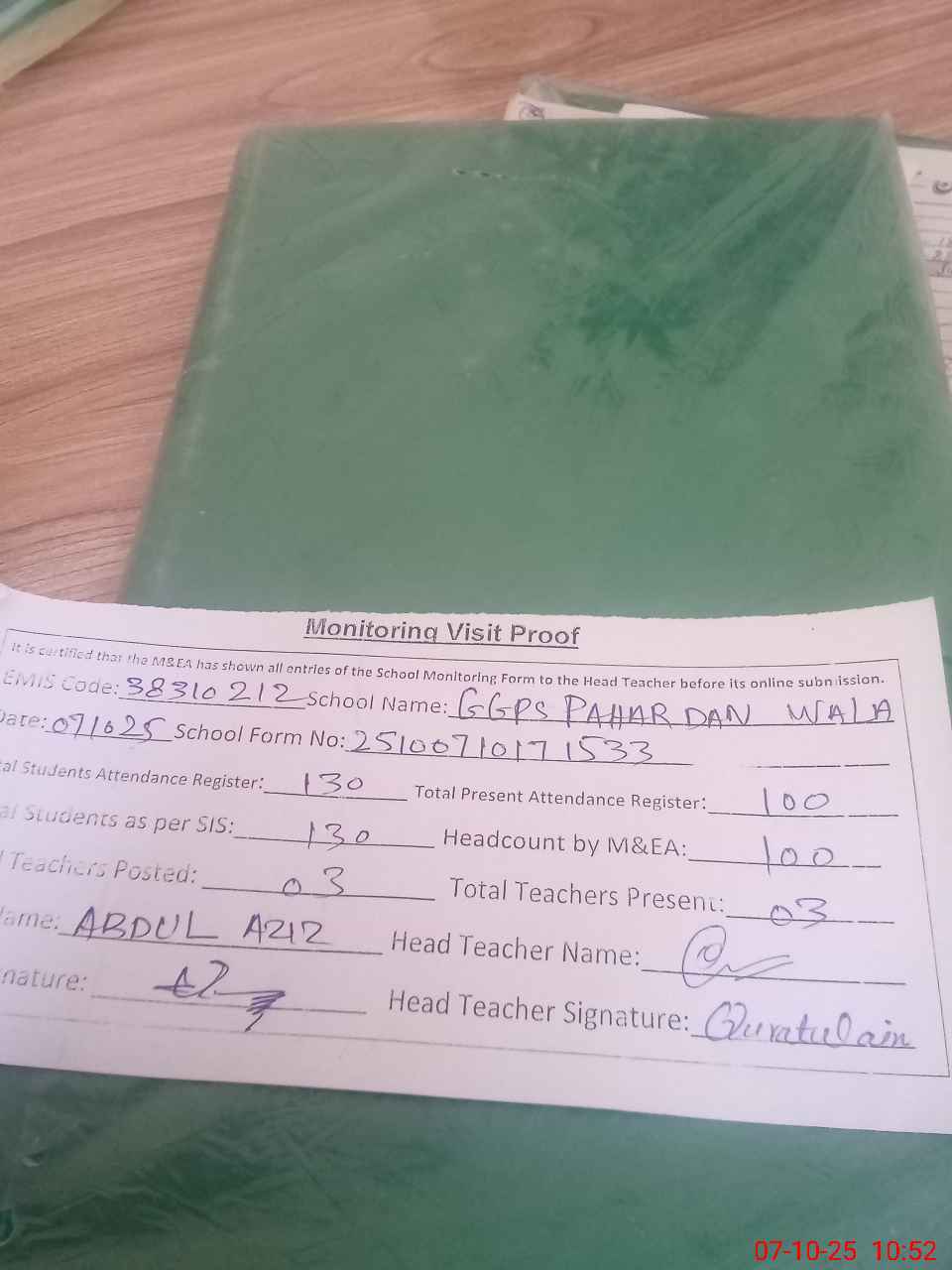 | EMIS Code: 38310212 | Name of School: GGPS PAHARDAN WALA | |||